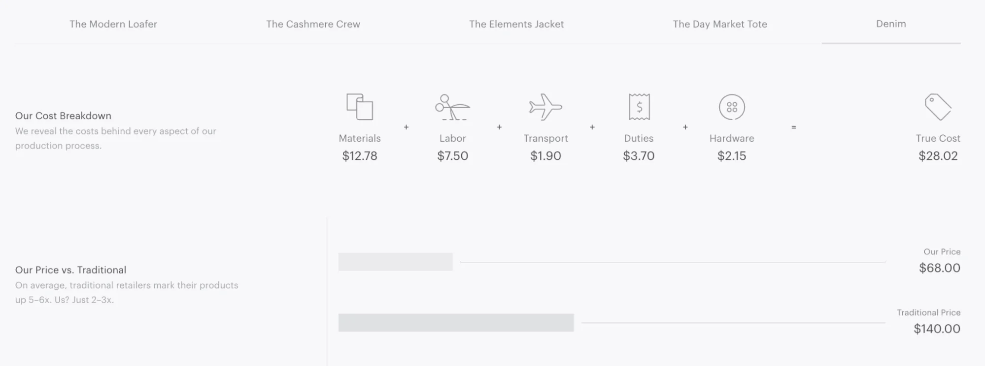 Everlane minh bạch chi phí để sản xuất mỗi bộ quần áo và họ kiếm được bao nhiêu lợi nhuận.