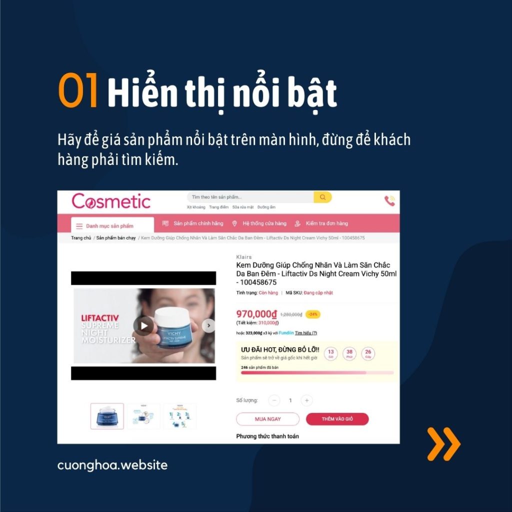 Người mua luôn quan tâm đến giá cả vì vậy hãy để giá sản phẩm hiển thị nổi bật trên màn hình cửa hàng của bạn, đừng để họ phải tìm kiếm.