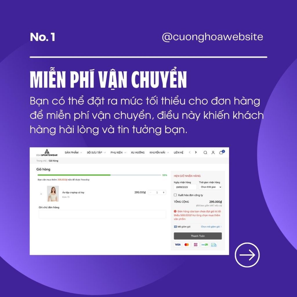 Bạn có thể làm cho khách hàng cảm thấy hài lòng bằng cách cộng chi phí giao hàng vào giá sản phẩm và thay vào đó là giao hàng miễn phí. Hoặc bạn cũng có thể đặt ra mức đơn hàng tối thiểu để miễn phí vận chuyển.