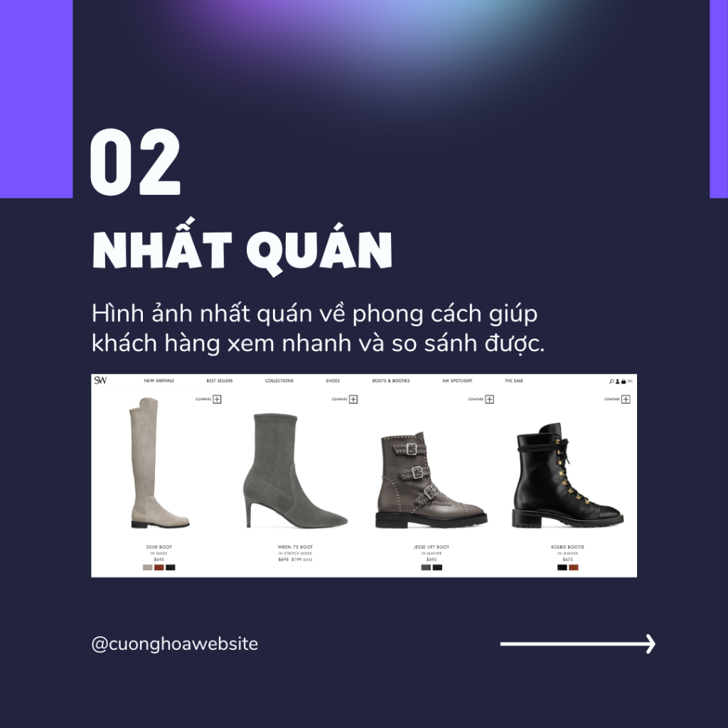 Tất cả các hình ảnh không cần giống hệt nhau nhưng chúng phải nhất quán về phong cách, nó giúp khách hàng có thể xem nhanh và so sánh được.