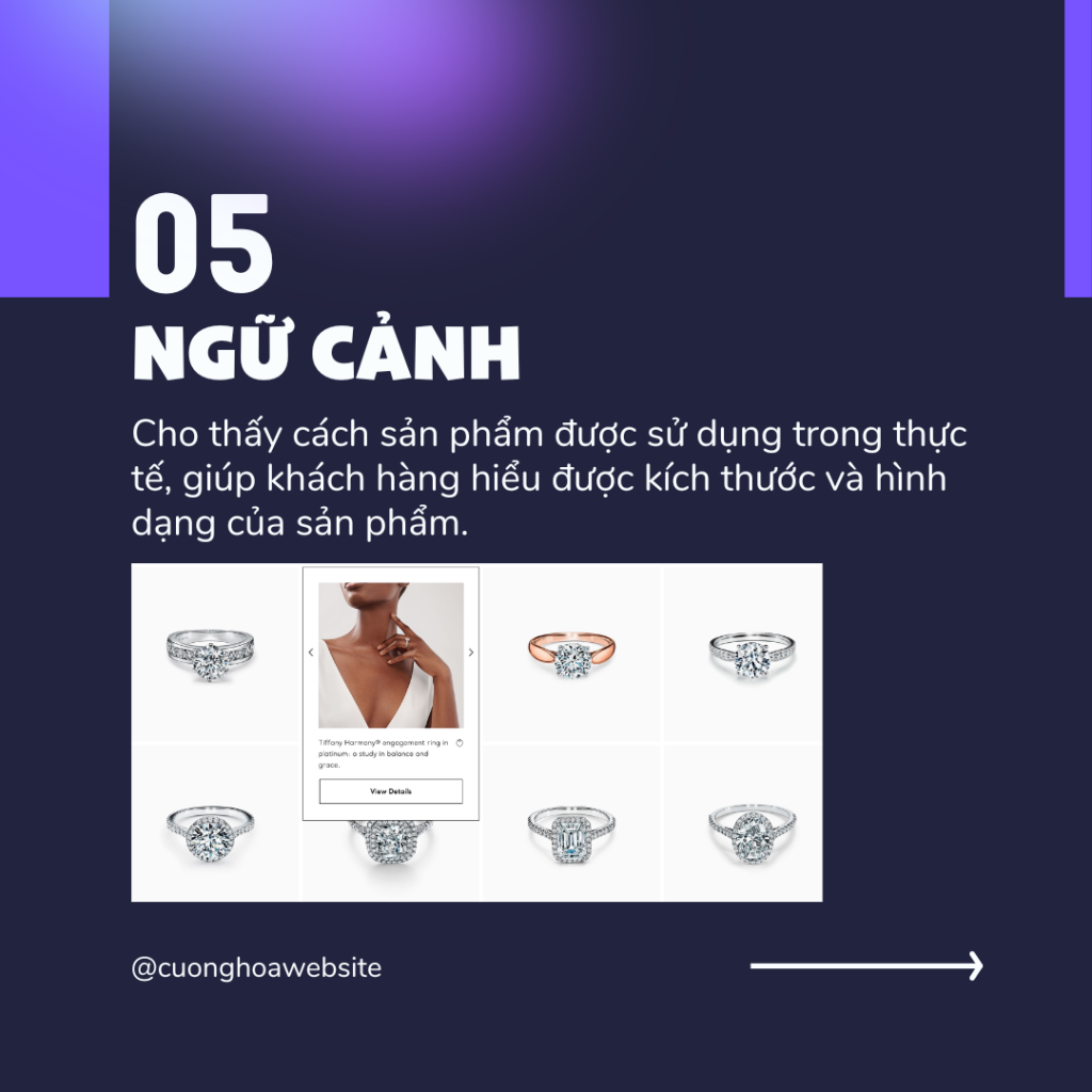 Việc hiển thị các mặt hàng trong ngữ cảnh cho thấy cách sản phẩm được sử dụng trong thực tế, giúp khách hàng hiểu được kích thước và hình dạng của nó.