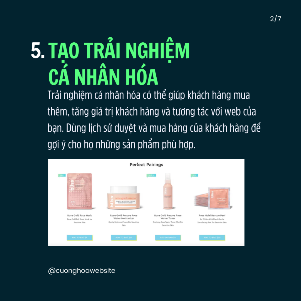 Nội dung cá nhân hóa không chỉ giúp bạn bán nhiều hơn mà còn giúp khách hàng gắn bó với bạn lâu dài và tương tác nhiều hơn. Trải nghiệm người dùng tốt thì khách hàng sẽ quay lại nhiều hơn.