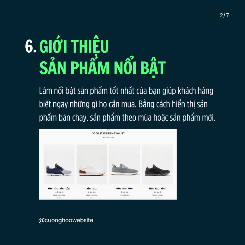 Bạn bán rất nhiều sản phẩm khác nhau nhưng bạn nên chọn những sản phẩm tốt nhất để đặt lên trang chủ. Hiển thị sản phẩm bán chạy, sản phẩm theo mùa hoặc sản phẩm mới, có thể thay đổi sản phẩm theo thời gian, xem sản phẩm nào được quan tâm nhiều nhất.
