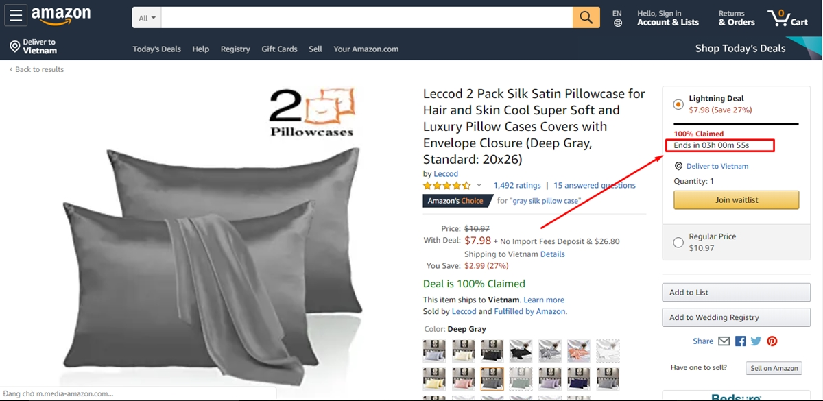 Amazon, gã khổng lồ thương mại điện tử, đã triển khai tính năng Stock Countdown trên nhiều trang sản phẩm của họ. Họ sử dụng tính năng này để tạo cảm giác khan hiếm và thúc đẩy khách hàng ra quyết định nhanh chóng. Theo nghiên cứu của Baymard Institute, việc này đã giúp Amazon tăng tỷ lệ chuyển đổi lên đến 13%.