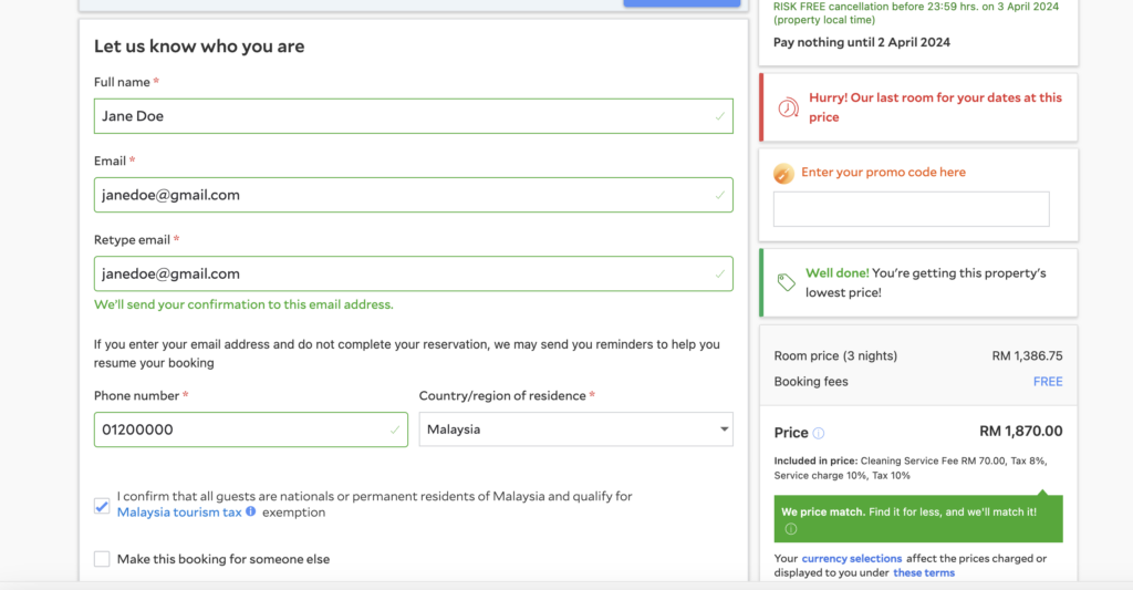 Agoda hiện đang sử dụng tính năng Stock Countdown trên trang checkout. Họ áp dụng tính năng này để tạo cảm giác khan hiếm và thúc đẩy khách hàng đặt phòng nhanh hơn.