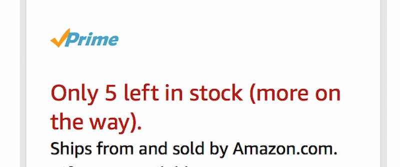 Khi bạn xem một sản phẩm trên Amazon, bạn có thể thấy thông báo như “Only 5 left in stock – order soon.” Điều này tạo cảm giác rằng sản phẩm đang sắp hết hàng, và nếu không mua ngay, khách hàng có thể bỏ lỡ cơ hội sở hữu sản phẩm đó.