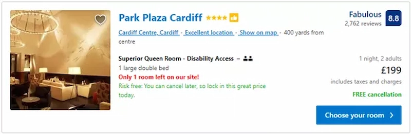 Khi tìm kiếm phòng khách sạn trên Booking.com, bạn có thể thấy thông báo “Only 1 room left at this price on our site” hoặc “Last booked 2 hours ago.” Những thông báo này tạo cảm giác khan hiếm và cấp bách, khiến khách hàng cảm thấy cần phải hành động ngay lập tức để tránh mất mát.